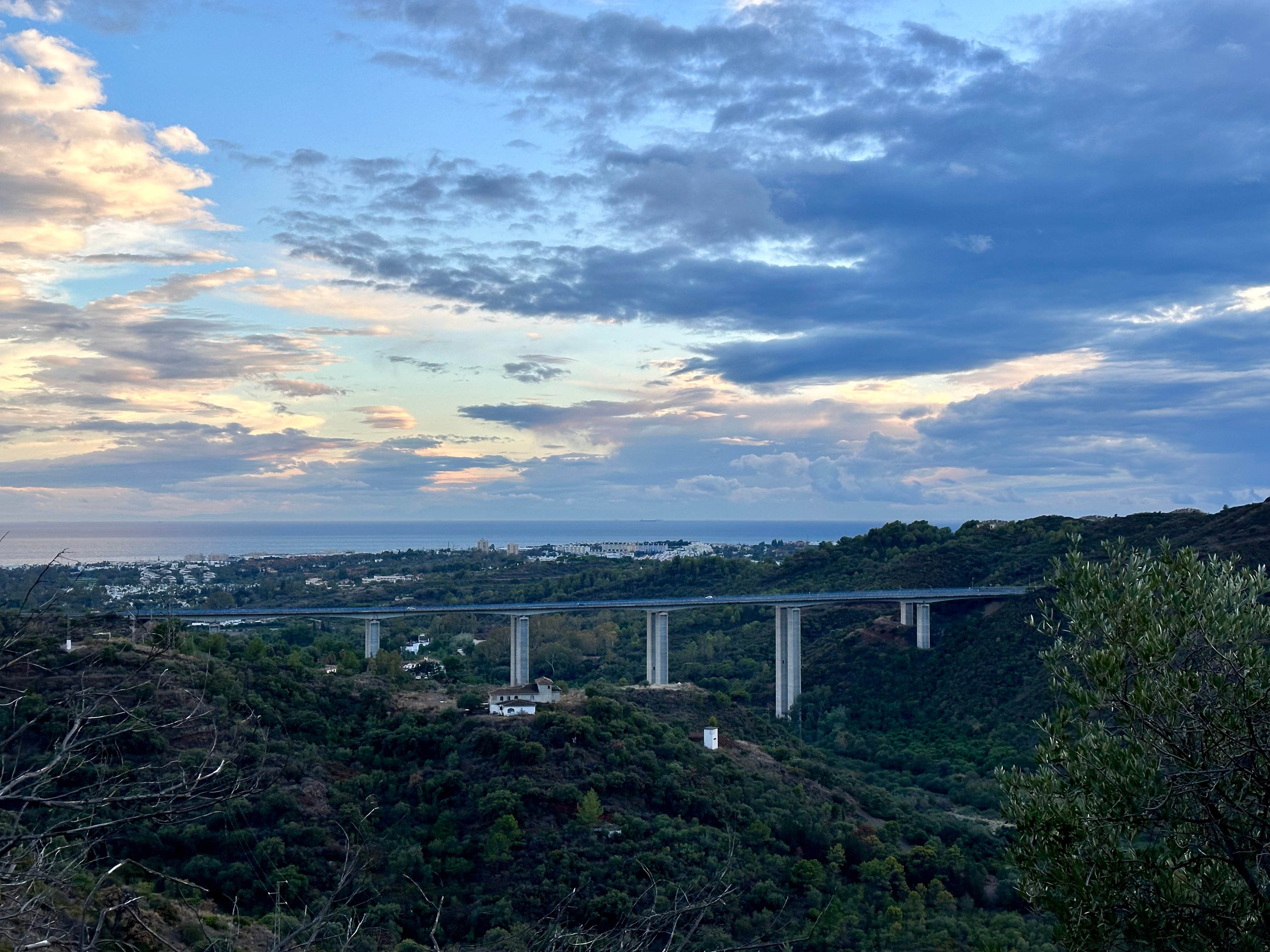 Вось такія віды ў Марбэльі на горы з якіх мы толькі што спусьціліся: