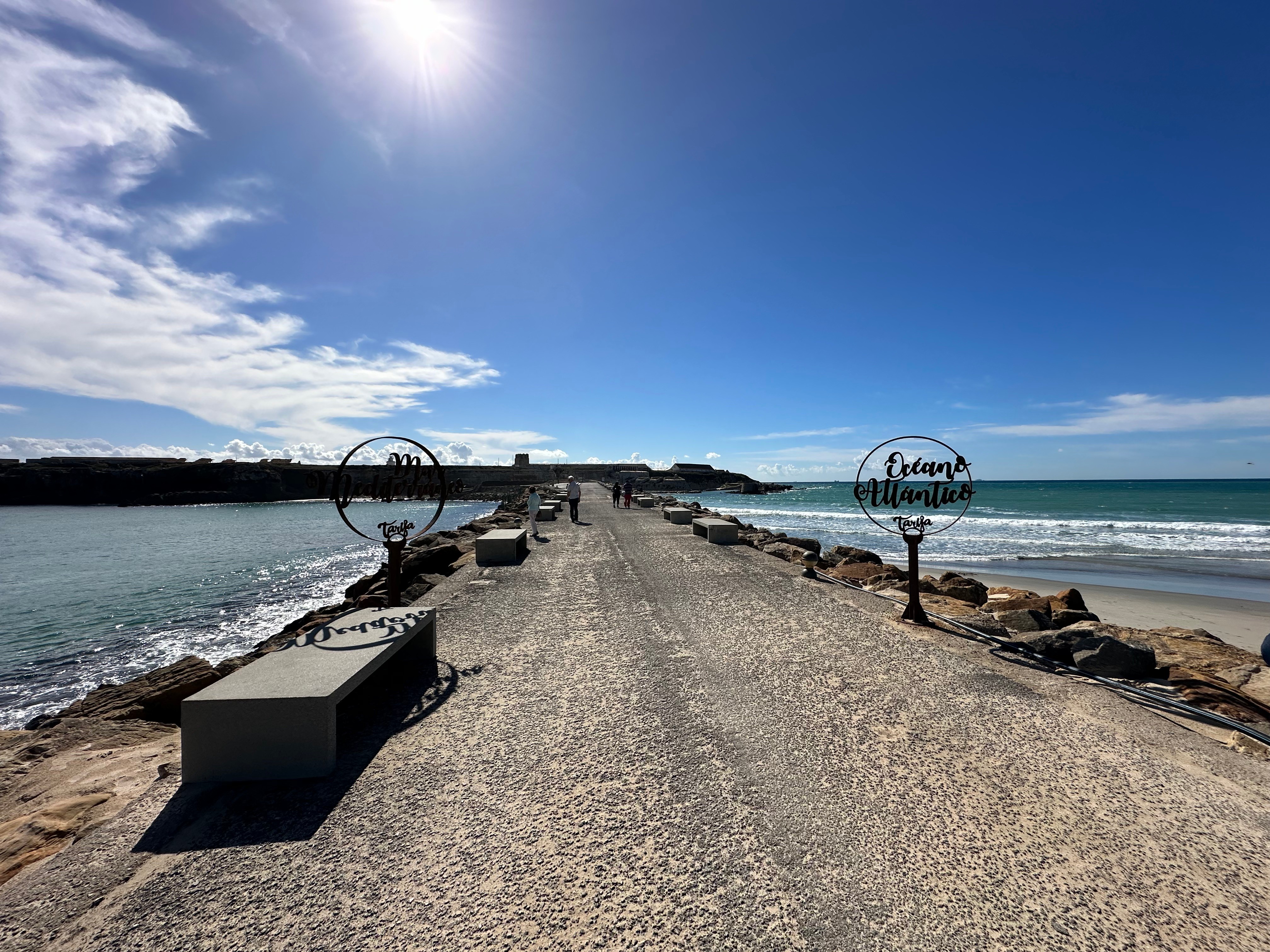 У самой Тарыфе нас цікавіць вузкая частка зямлі - Frontera Mar Mediterráneo-Océano Atlántico - паміж кантынентам і выспай Isle de Tarifa. Вось так выглядае умоўная мяжа паміж двума воднымі прасторамі.