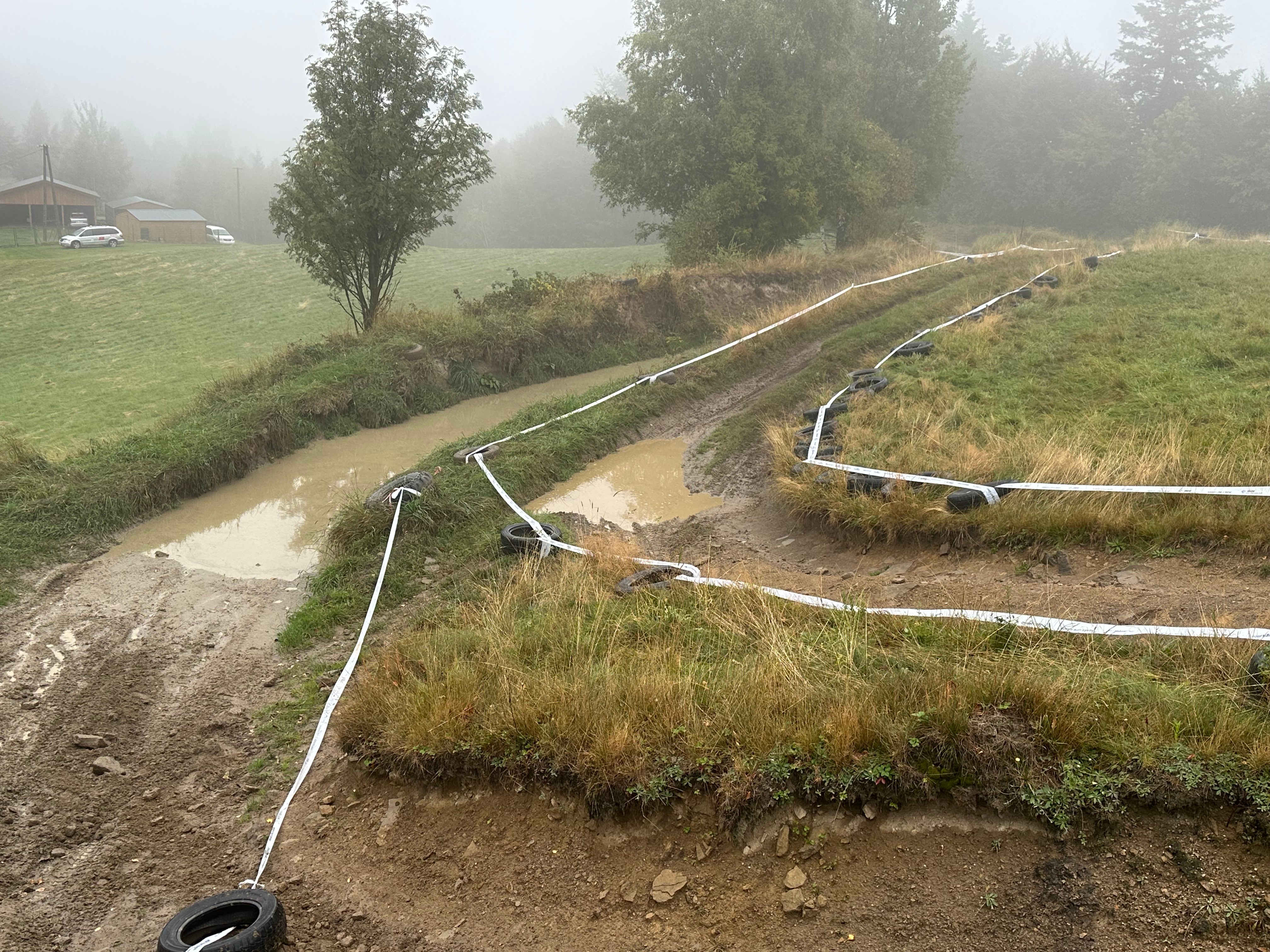 Траса выглядала складанай, нават калі было б суха. Ва ўмовах дажду - няма чаго казаць.