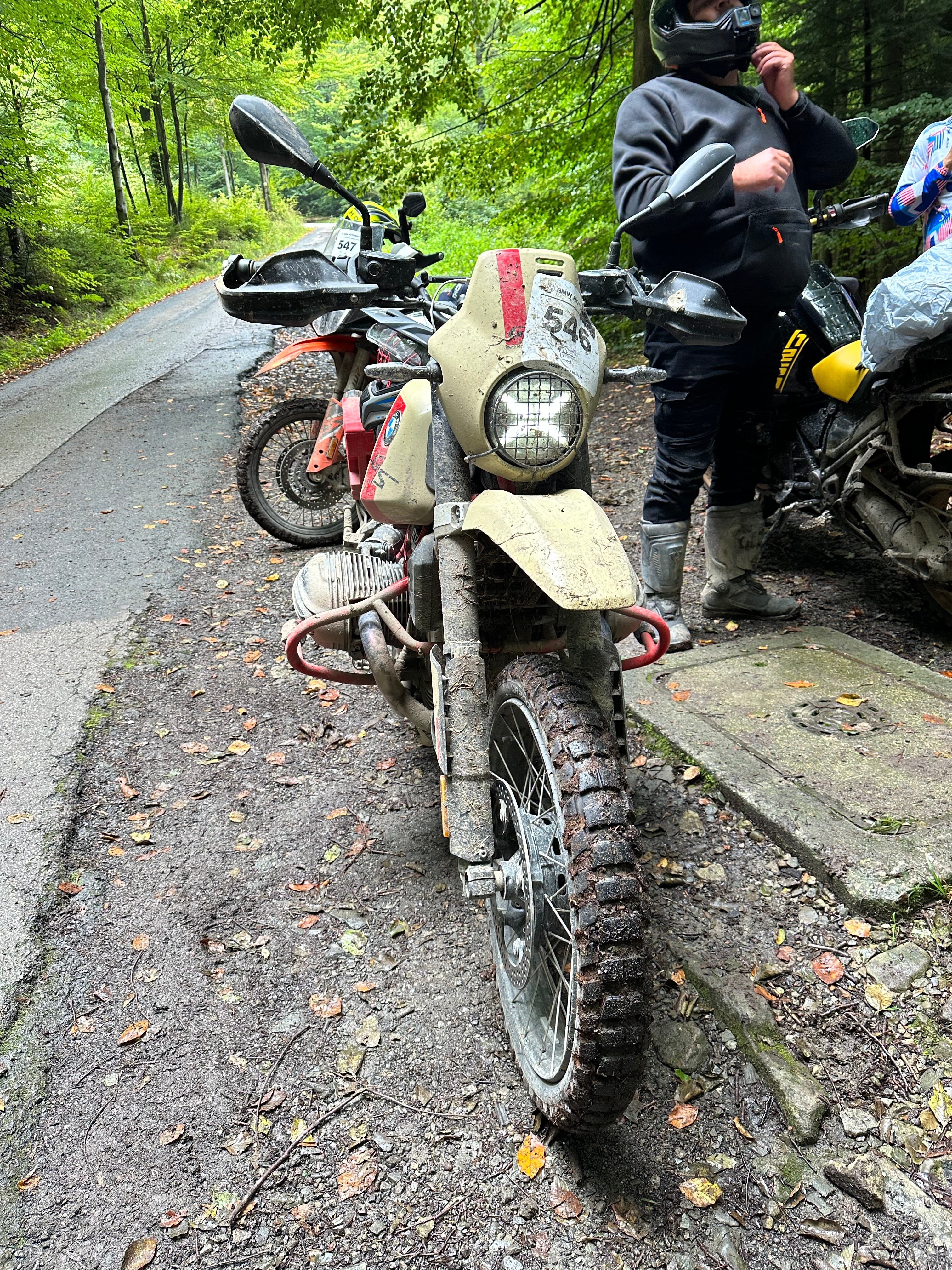 Прыйшлося сысьці ўніз і дапамагчы яму. Апынулася, што хлопец на старым малым GSе едзе на шасэйных пакрышках па трасе Адвэнчэр, якая мае агульную частку з Чэленджам.
