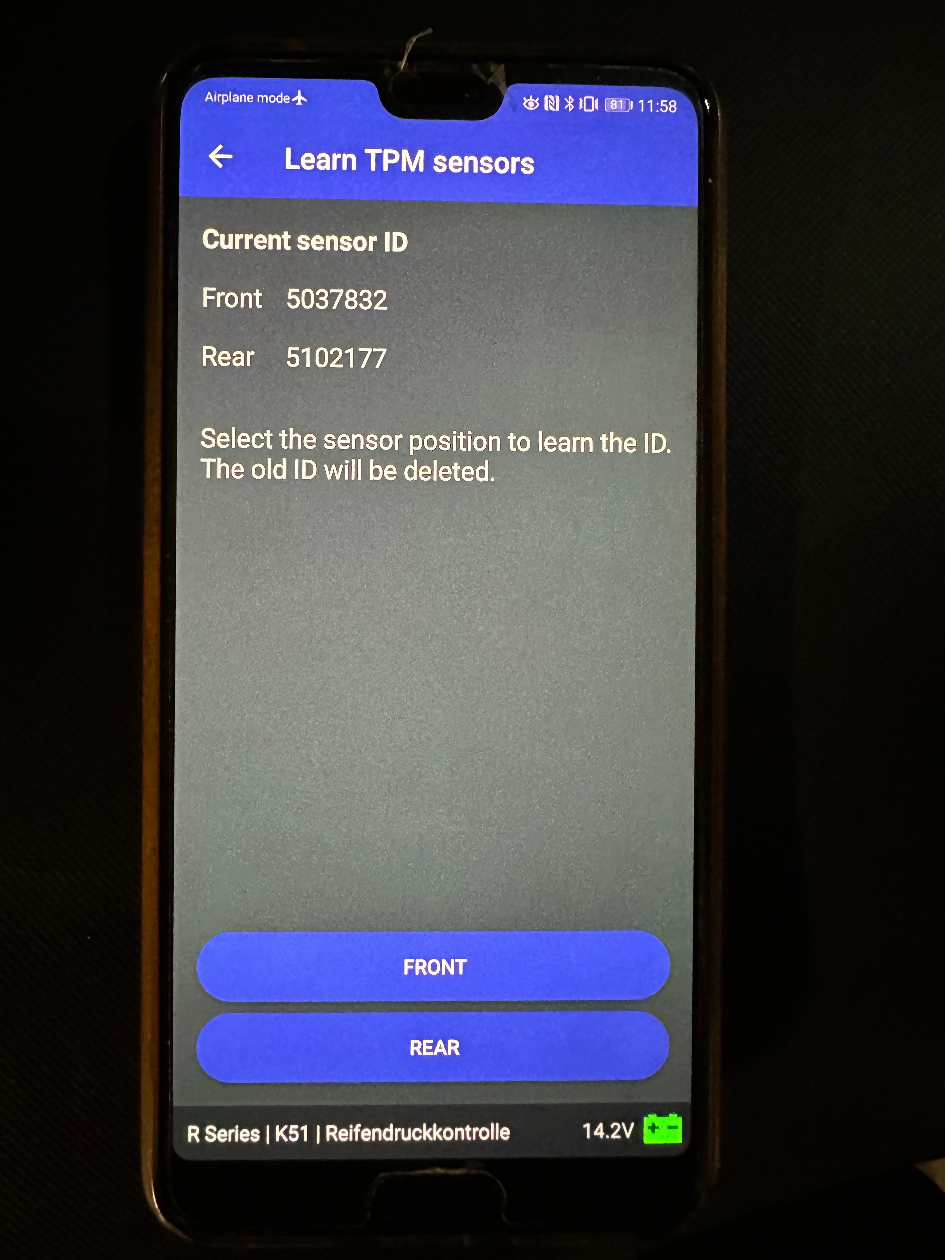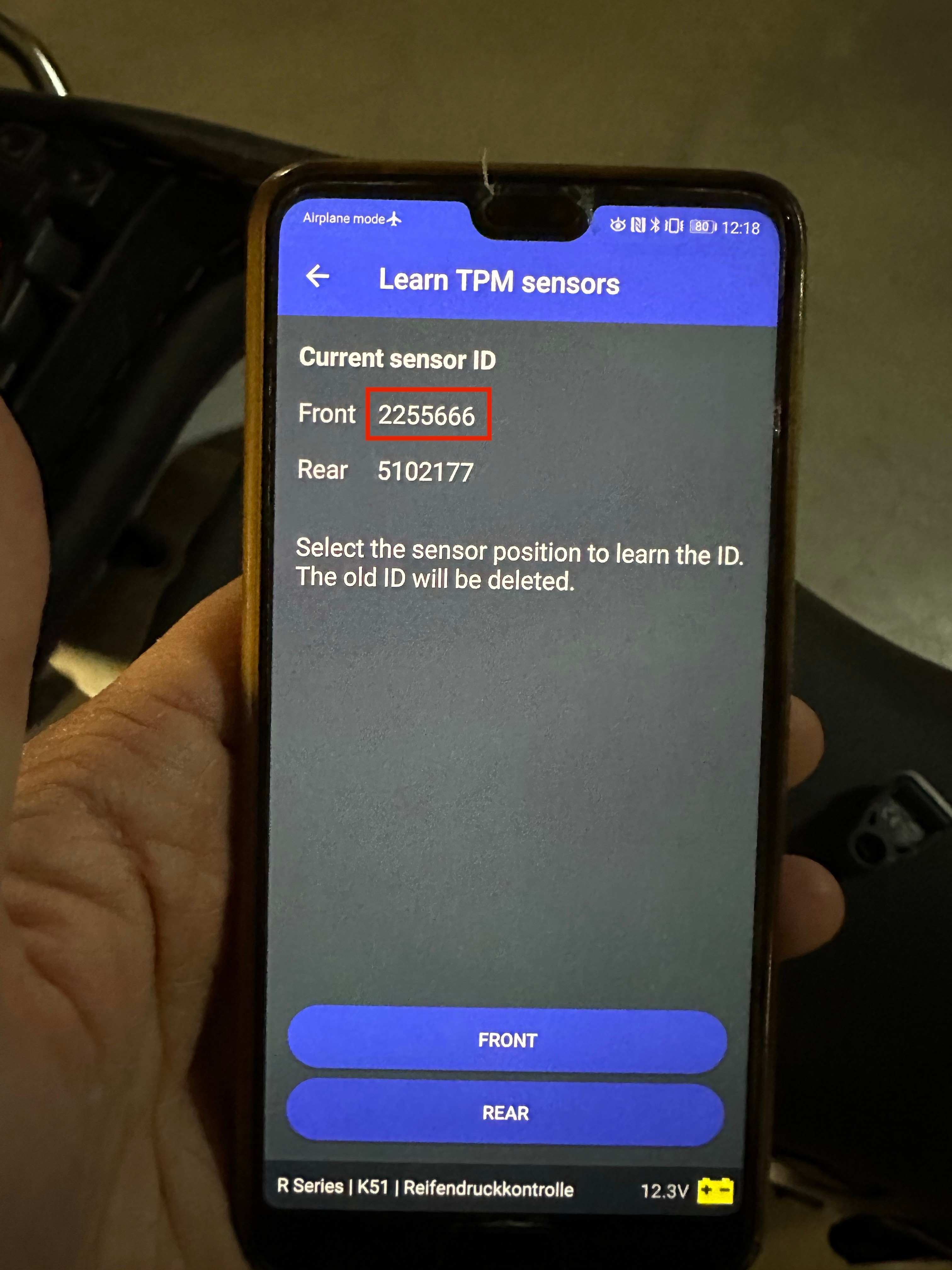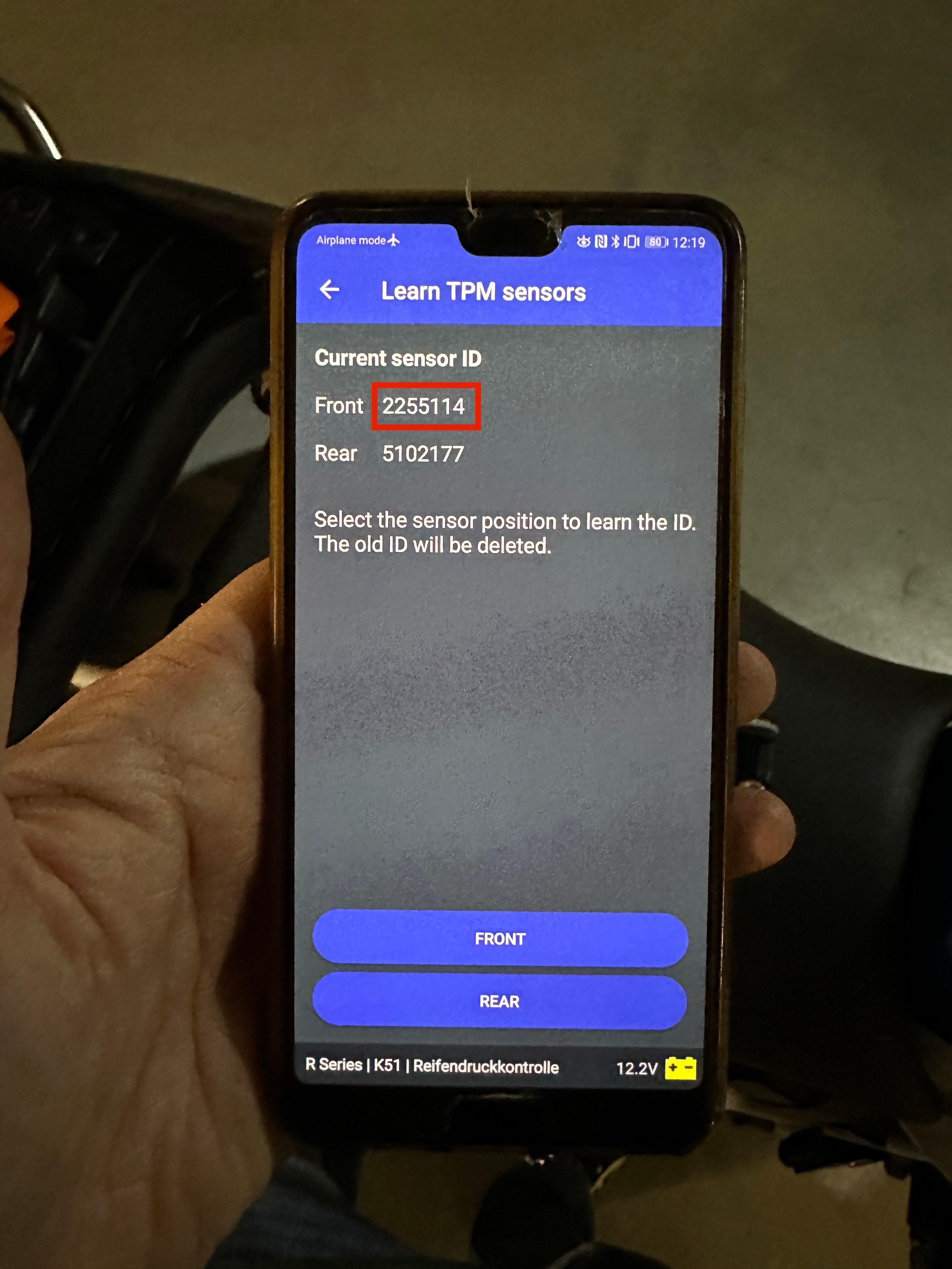 Вяртаю арыгінальны пярэдні id нумар: для гэтага актывую яго з дапамогай TPMS EL-50448 і потым шукаю ў Motascan.